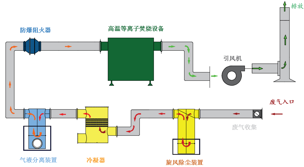 高溫等離子焚燒技術能夠處理高濃度、成分復雜、易燃易爆、含有固態(tài)、油狀物的工業(yè)廢氣。